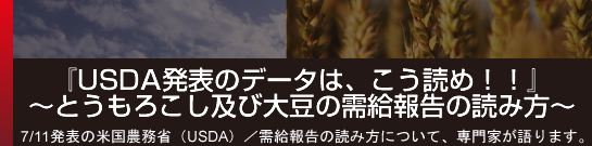 総合TOP -> セミナー情報 -> 『USDA発表のデータは、こう読め!!』~とうもろこし及び大豆の需給報告の読み方~