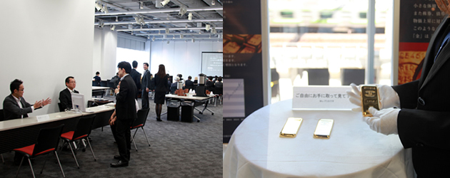 今回は広い会場を確保できたこともあり、相談コーナーや、金地金のレプリカの展示コーナーなども開設。